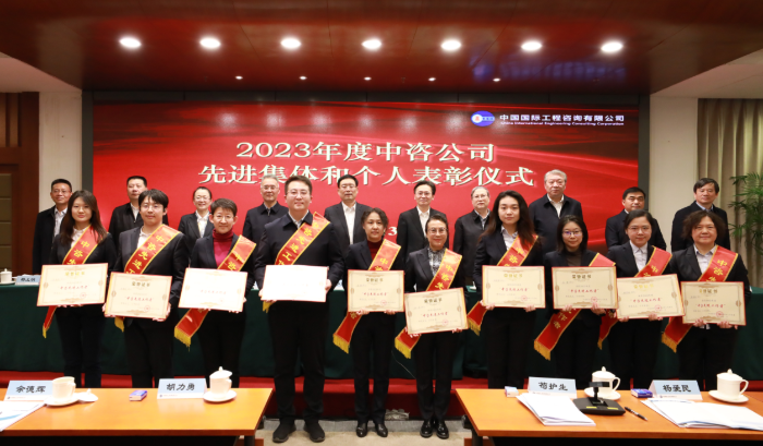 與會(huì)領(lǐng)導(dǎo)為“中咨先進(jìn)集體”獲獎(jiǎng)代表頒獎(jiǎng)
